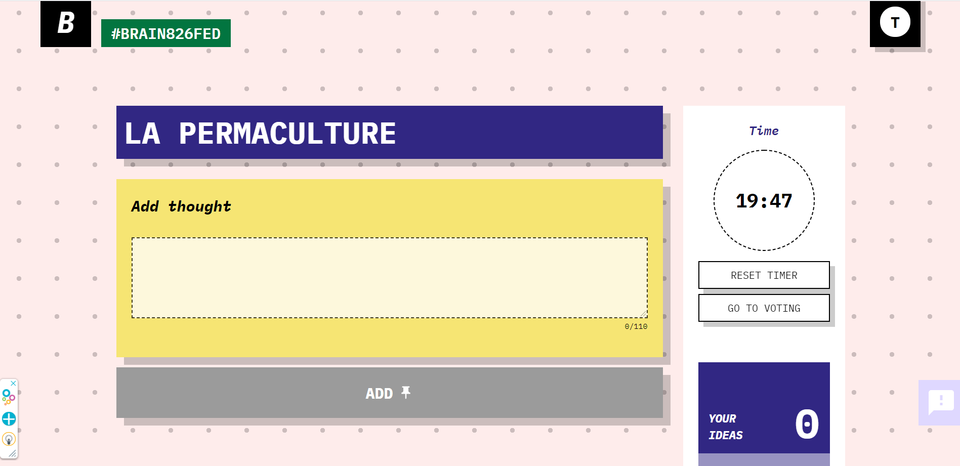 brainstormer est un service en ligne très pratique pour créer des sessions de brainstorming rapidement et obtenir une validation des idées par une équipe. A l’accueil il suffit de créer une sessions, de la nommer, puis de partager le lien ou le code de la sessions avec les participants.