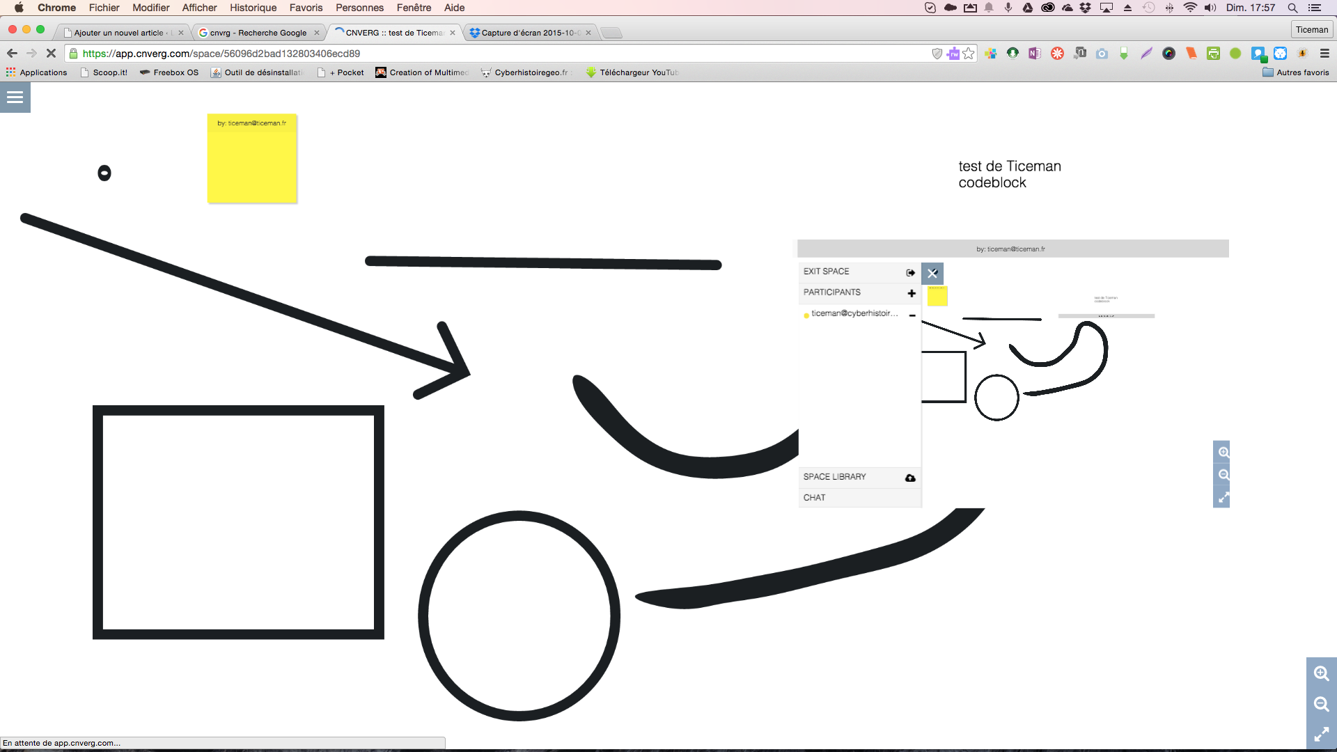 L’avantage de cnverg est aussi de pouvoir préparer à l’avance son tableau de façon à disposer d’un espace de travail déjà préparer avant de lancer la fonction collaborative. On retrouve à l’accueil ses tableaux créés et la possibilité d’en créer de nouveaux.