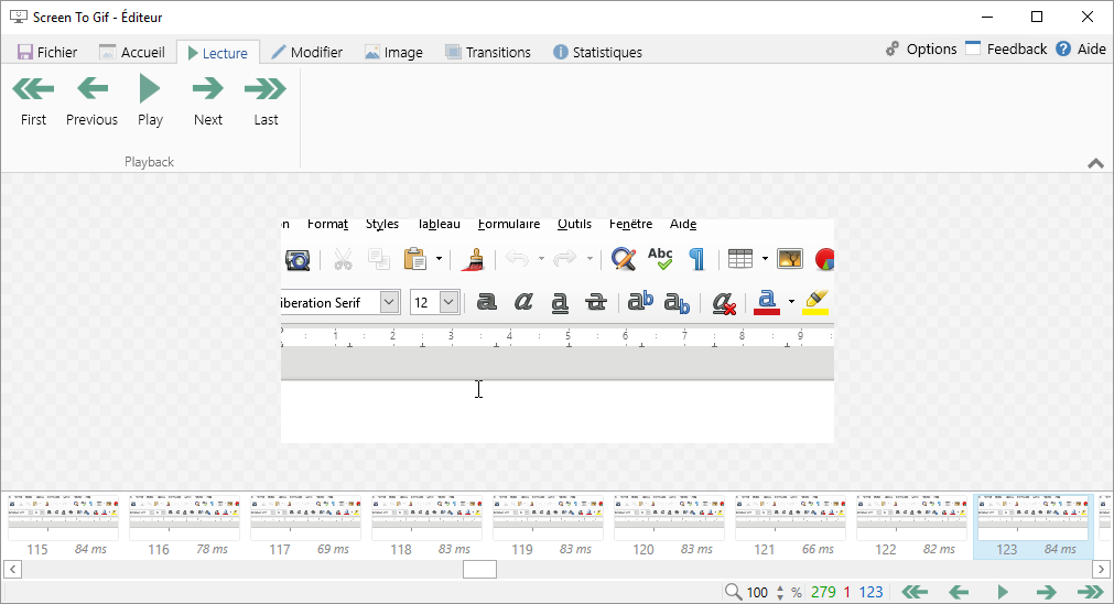 Le véritable potentiel du logiciel se révèle au moment de l’édition car il ne se contente pas d’enregistrer et de vous fournir une vidéo mais permet d’éditer votre vidéo dans les détails, à l’image prêt. Cette interface permet de modifier chaque image individuellement, d’y ajouter du texte ou des dessins, d’afficher toutes les touches qui ont été frappées pendant l’enregistrement.