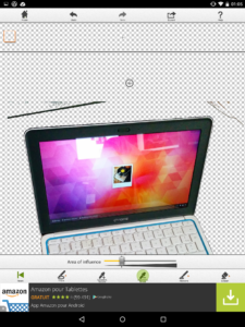 Quel que soit le mode utilisé, vous disposez d’une micro fenêtre au dessus de la zone de travail qui zoome la zone sur laquelle se trouve votre doigt et permet un détourage plus précis. Pour être encore plus précis avec un pincement de doigt, vous pouvez zoomer votre image pour travailler encore plus finement.
