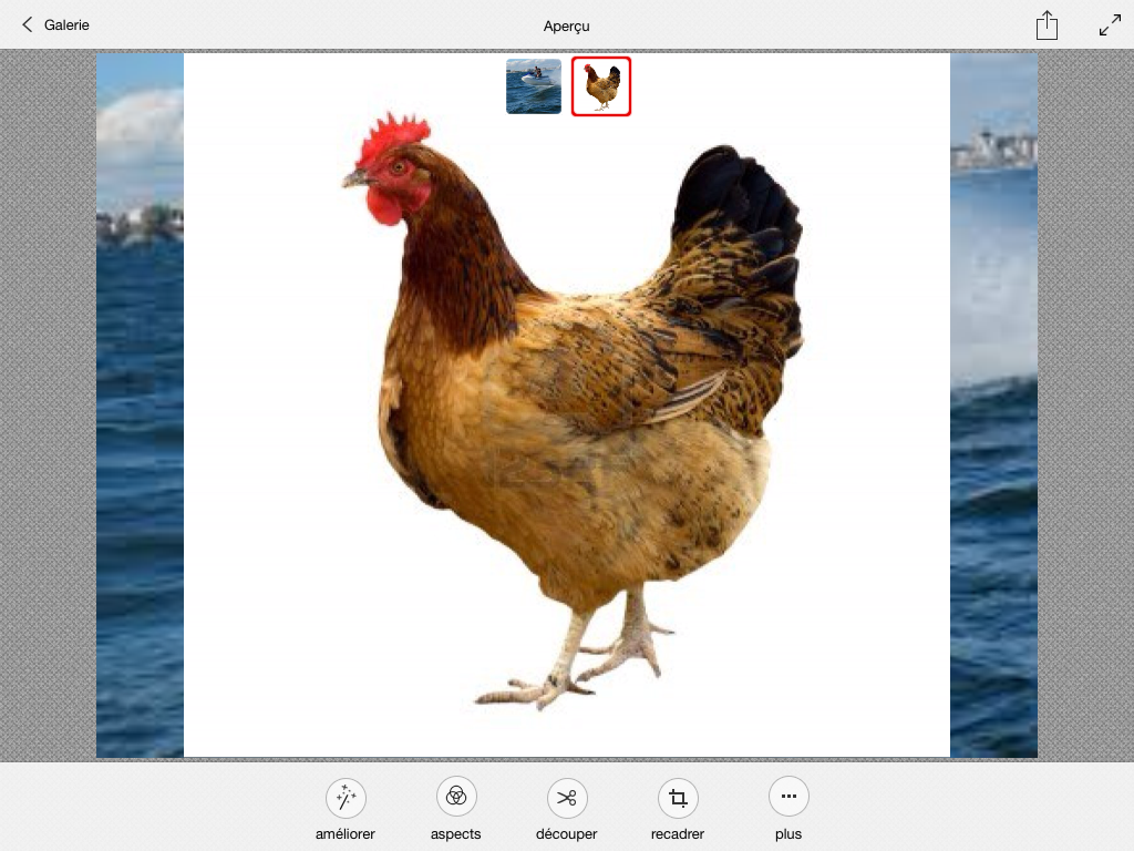 Je viens donc d’insérer une poule par dessus mon jetski. Les deux images sont indépendantes et donc déplaçables, sommables etc.